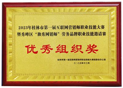 桂林市第一届互联网营销师职业技能大赛暨秀峰区“独秀网销师”劳务品牌职业技能邀请赛优秀组织奖