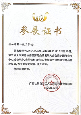 2025年第三届全国劳务协作暨劳务品牌发展大会参展证书