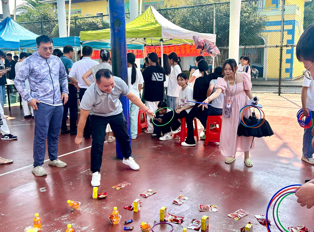 互动体验区——“套圈欢乐摊”、“骰子辣条”、“抽奖刮刮乐”等项目人气高涨,学生排队参与,套中奖品时的欢呼与未中时的笑声交织,夏日燥热被欢乐氛围驱散。